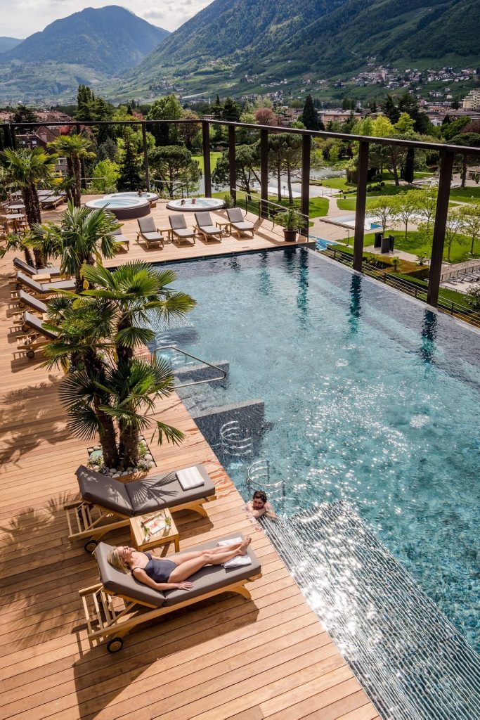 Lindo hotel com spa bem no centro de Merano, com uma vista maravilhosa da cidade e das montanhas ao redor, o Spa no último andar é algo sublime, ideal não só para casais, mas também para famílias com filhos pequenos.