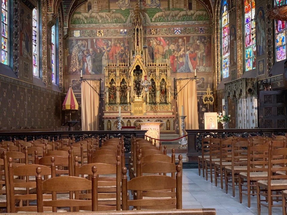 Uma obra-prima absoluta é o Salão Gótico (1400) com suas pinturas murais do final do século XIX, ilustrando os eventos mais importantes da história de Bruges, e a abóbada policromada.
